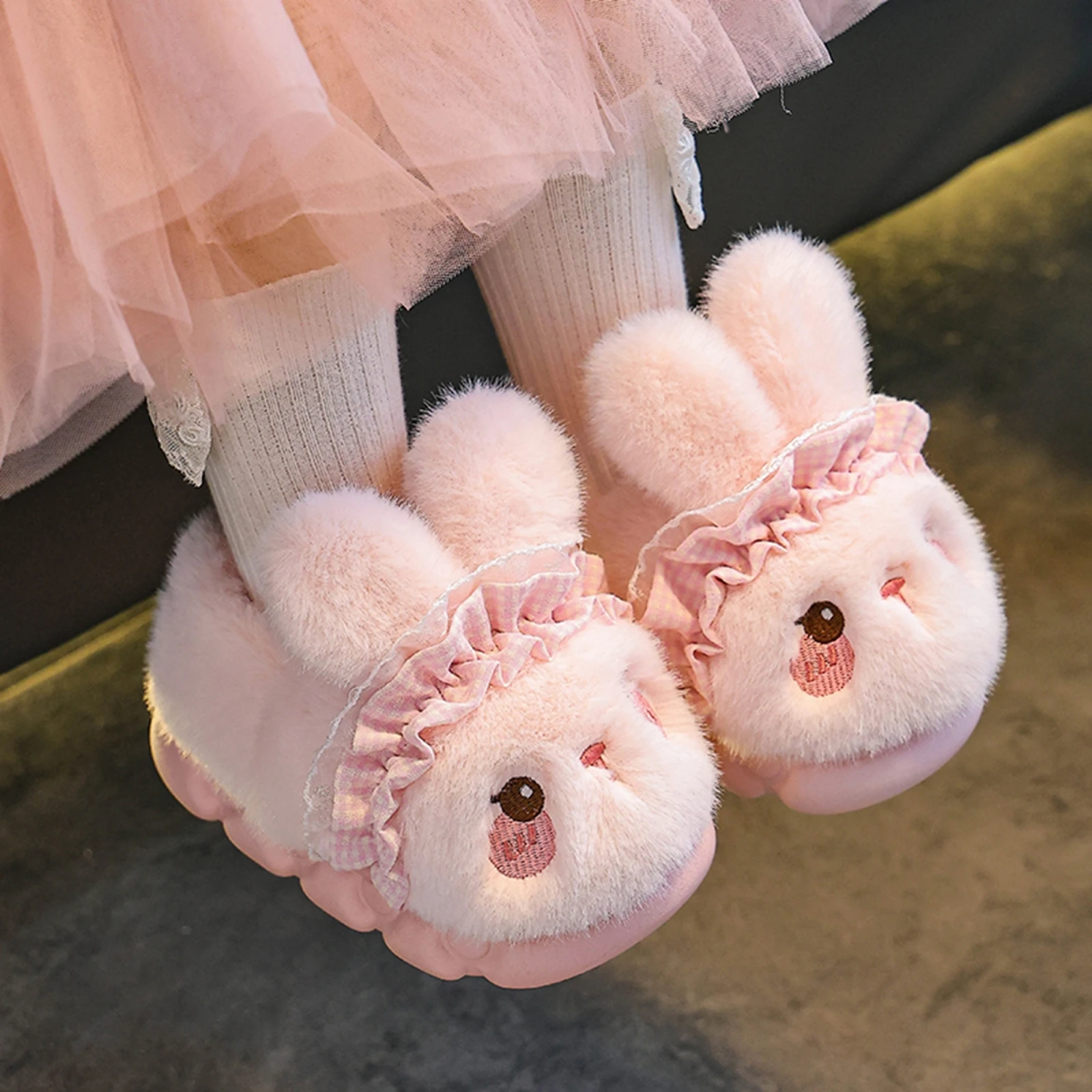 Matching Winter Slippers, Soft Plush Rabbit Cartoon Slippers Non-slip Warm House Shoes for Women Girls