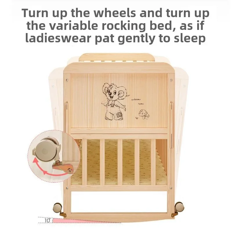 4 in 1 Crib solid wood splicing large bed movable baby bb cradle newborn multifunctional children’s cot Food grade PVC