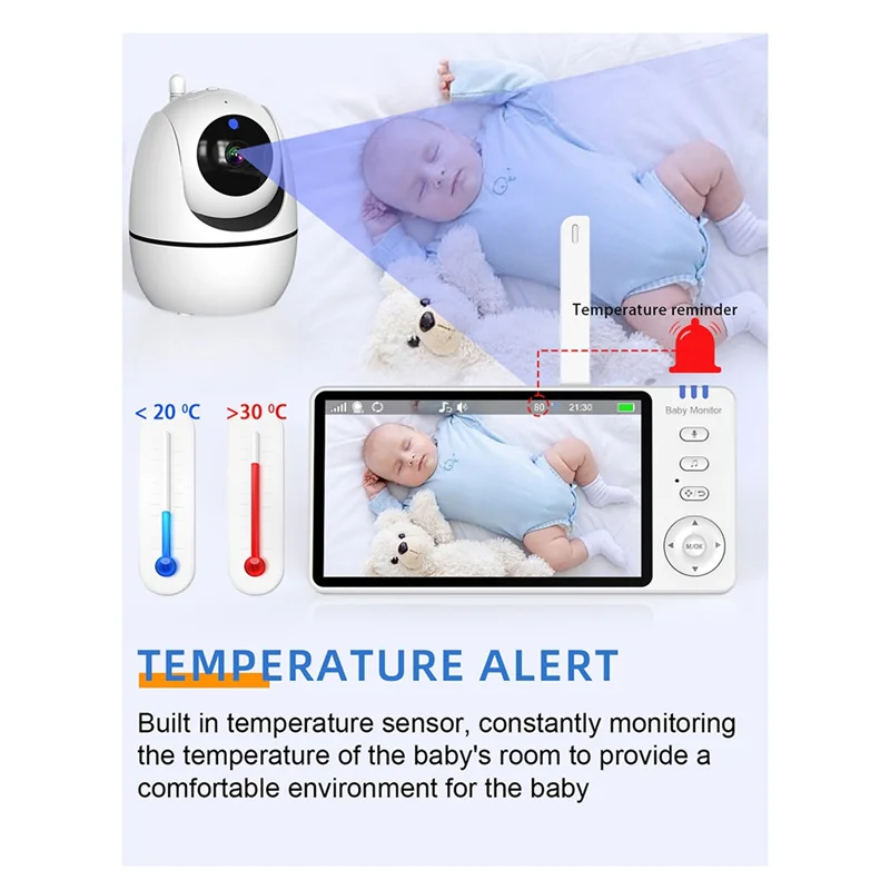 Temperature Monitoring: Built-in temperature sensor alerts you if the room deviates from preset thresholds, ensuring your baby’s comfort.