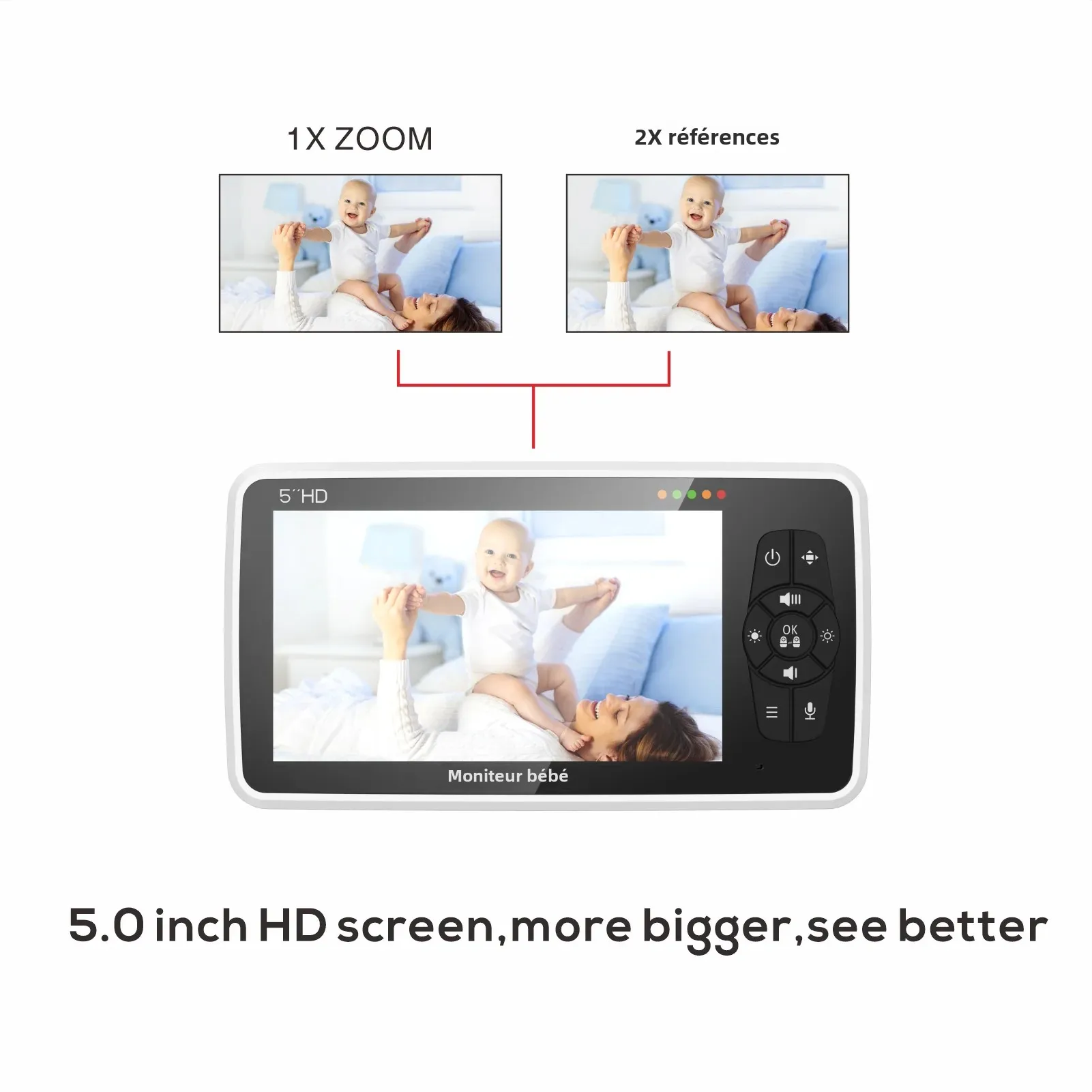 New 5 inch Video Baby Monitor with Camera and Audio, 4X Zoom, 22Hrs Battery, 1000ft Range 2-Way Audio Temperature Sensor Lullaby