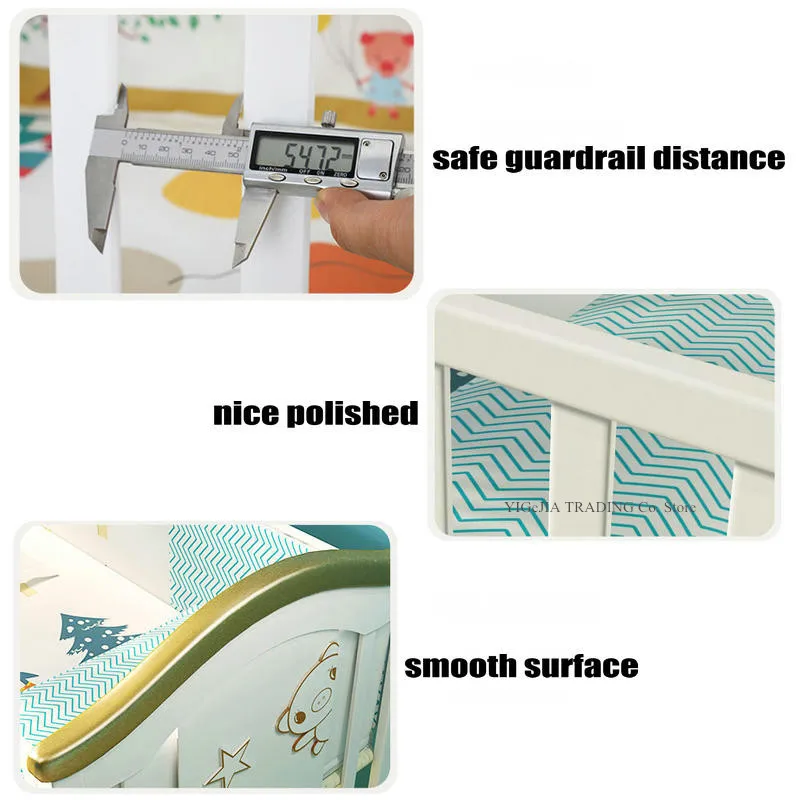 Side-opening guardrail, sleepy, easy to take care of the baby and hug in and out; can be spliced into a large bed for easy feeding.