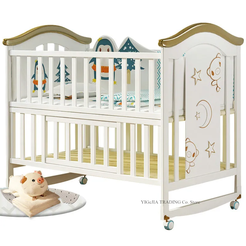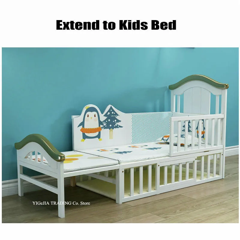 Larger Size Wood Baby Crib, can Convert to Elder Kids Bed, 124*68*105cm, Multifunctional Newborn Cot can Joint With Adult Bed