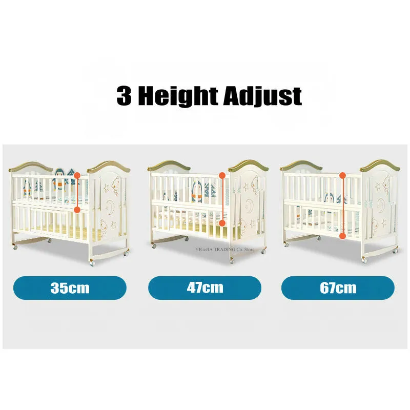 Multifunctional baby crib, can be rocking cradle, can change to play bed, also can have big storage space in the lower layer.